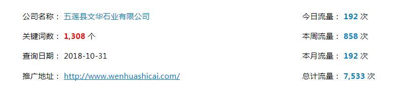 簽約五蓮縣文華石業(yè)有限公司網(wǎng)絡(luò)推廣項目。目前網(wǎng)絡(luò)推廣,百度首頁關(guān)鍵詞已達(dá)1360多個。項目穩(wěn)定進行中。
