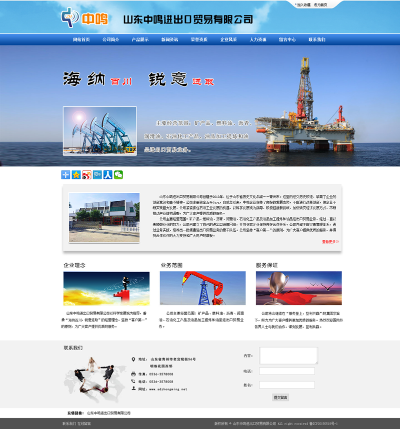山東中鳴進(jìn)出口貿(mào)易有限公司創(chuàng)建于2013年,位于山東省歷史文化名城——青州市。這里的悠久歷史積淀,孕育了企業(yè)的創(chuàng)新意識(shí)和奮斗精神。公司注冊資金五千萬元,自成立以來,中鳴企業(yè)保持了良好的發(fā)展態(tài)勢,不斷進(jìn)行改革創(chuàng)新,使企業(yè)不斷實(shí)現(xiàn)巨大發(fā)展,公司緊緊抓住石油工業(yè)發(fā)展的機(jī)遇,以科學(xué)發(fā)展觀為指導(dǎo),積極迎接新挑戰(zhàn),加快轉(zhuǎn)變經(jīng)濟(jì)發(fā)展方式,不斷推動(dòng)產(chǎn)業(yè)結(jié)構(gòu)調(diào)整,為廣大客戶提供優(yōu)質(zhì)的服務(wù)。